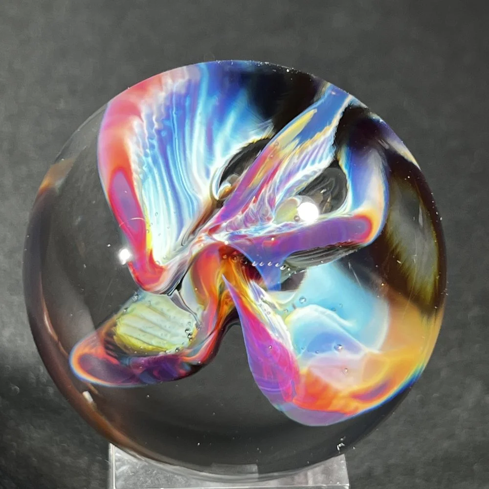 A completely spherical orb, approx. 2.25” in diameter, signed JS and the year it was made.