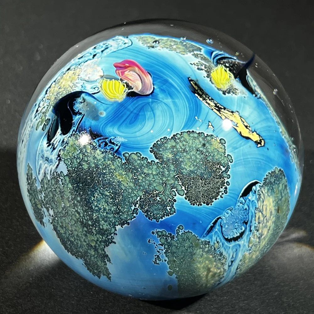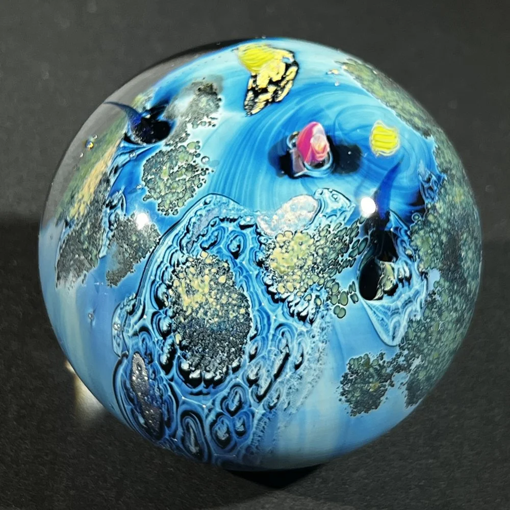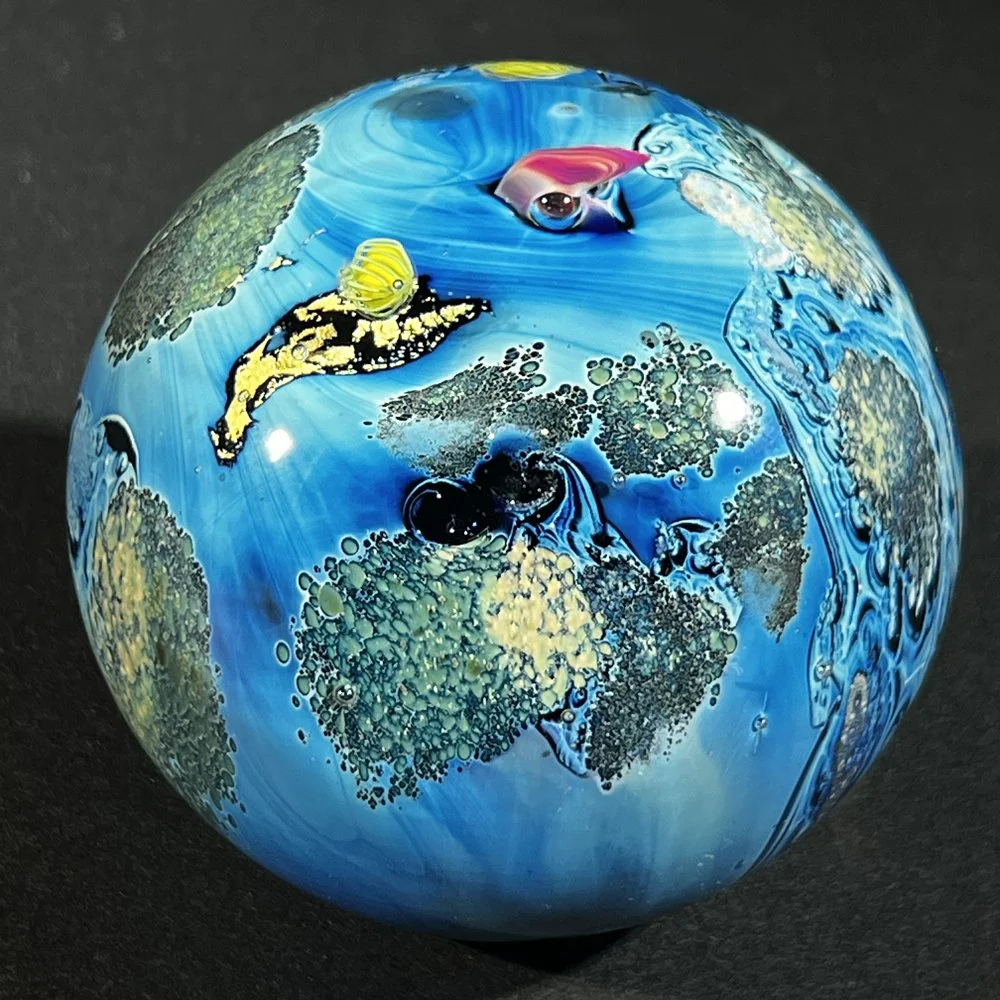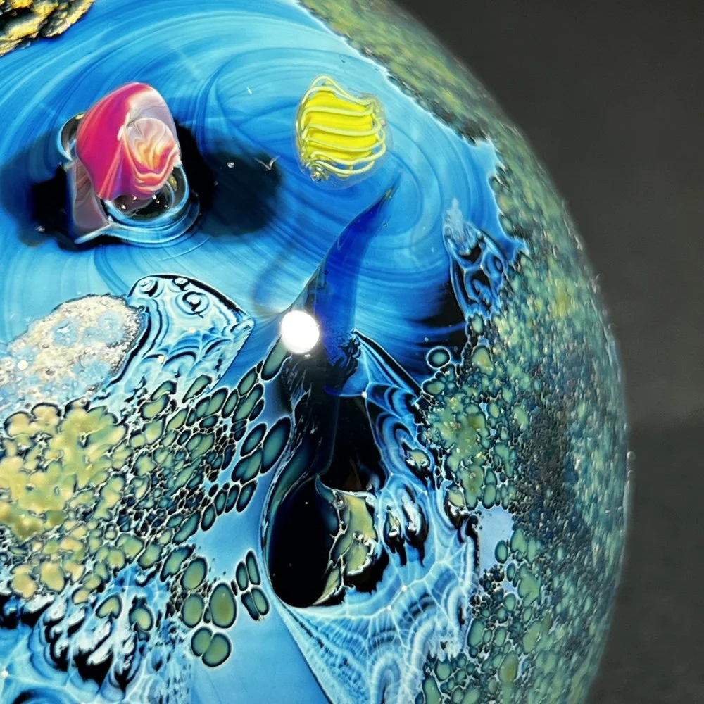 This approx. 3.5” Planet has a flattened polished base serialized 8.25.25 and signed Simpson.
